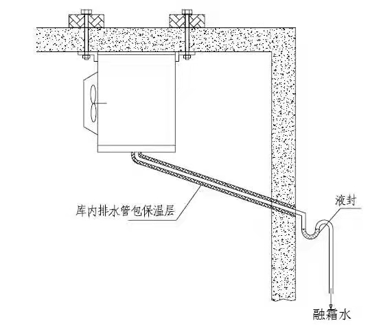 2、冷風機的排水管道通往冷庫外應有一定的坡度,使融霜水順利地排出庫外;